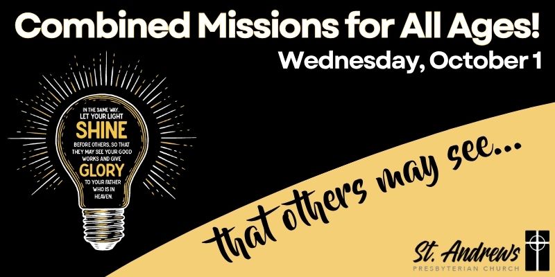 We are excited to welcome some of our missionaries here for these two days! Wednesday, October 1, we will hear from Franklin & Beth Beaver and Tom Wright. We will also be doing something special for all of our partners across the world, and we need your help! Adults and youth will be in the Great Hall. Children will be on the Children's Hallway, learning about various missions partners across the world.